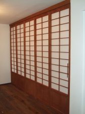 Imate radi prostorno stanovanje, pa bi vseeno radi imeli kakšen kotiček, ki je manjši, ravno pravšen, pravo gnezdece s posteljo in zadostno mero zasebnosti? Pomembno je tudi, da ne okrnimo tega velikega prostora, tako da bi ga zreducirali na en temačen predel. Shoji stena je v takih primerih idealna rešitev, ker razmeji prostor, hkrati pa prepušča svetlobo, da ostane prostor še vedno zadosti svetel. Če hočemo imeti to steno premično, jo lahko naredimo v obliki drsnih ali harmonika vrat. Tokrat smo uporabili harmonika vrata. Tako smo dobili še eno sobo, spalnico. Do te sobe lahko dostopamo samo preko vrat ali pa steno zložimo in imamo spet tisti velik prostor, ki ga želimo ohraniti.